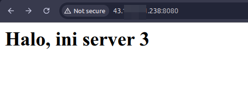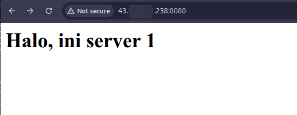 Untuk memastikan HAProxy berjalan, kita bisa matikan salah satu container. Kemudian kita refresh lagi untuk melihat apakah load balancing berjalan dengan baik atau tidak.